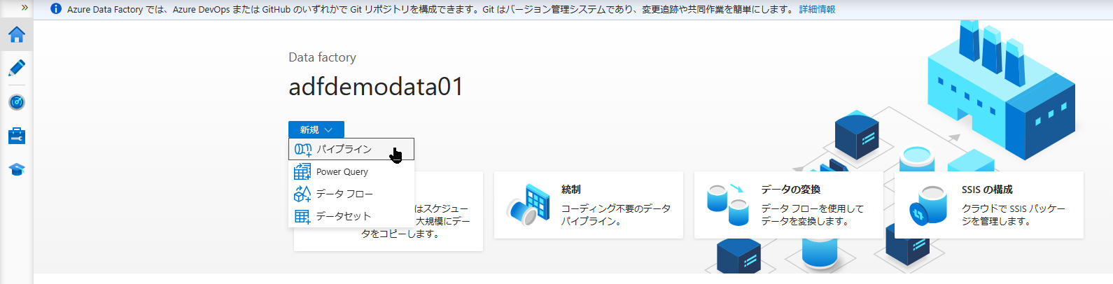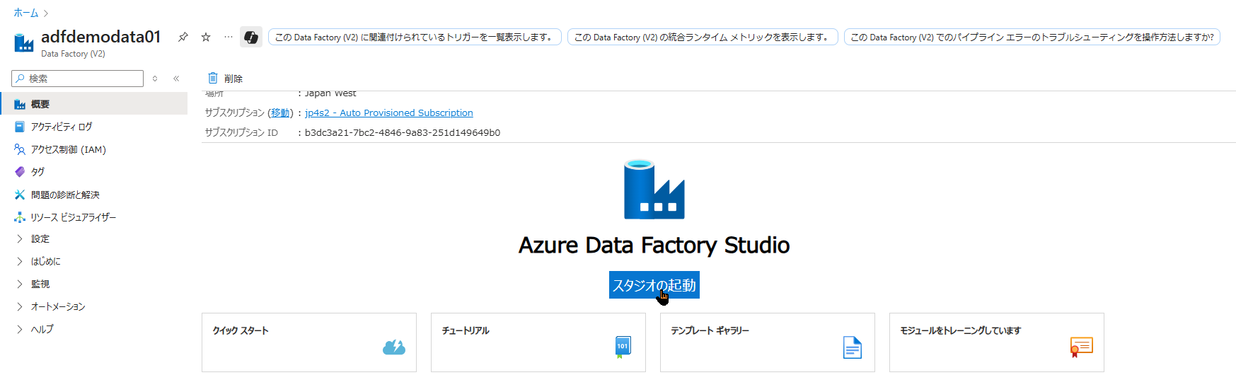 Data Factory を作成し、スタジオを開く