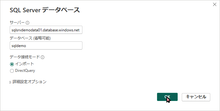 認証:SQL Server 認証(ユーザー名: