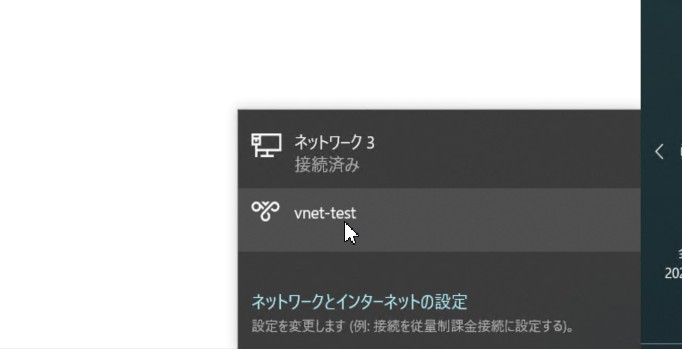 - 開いたメニューの中に、仮想ネットワークと同じ名前(例: vnet-test) の接続先が追加されているはずです。