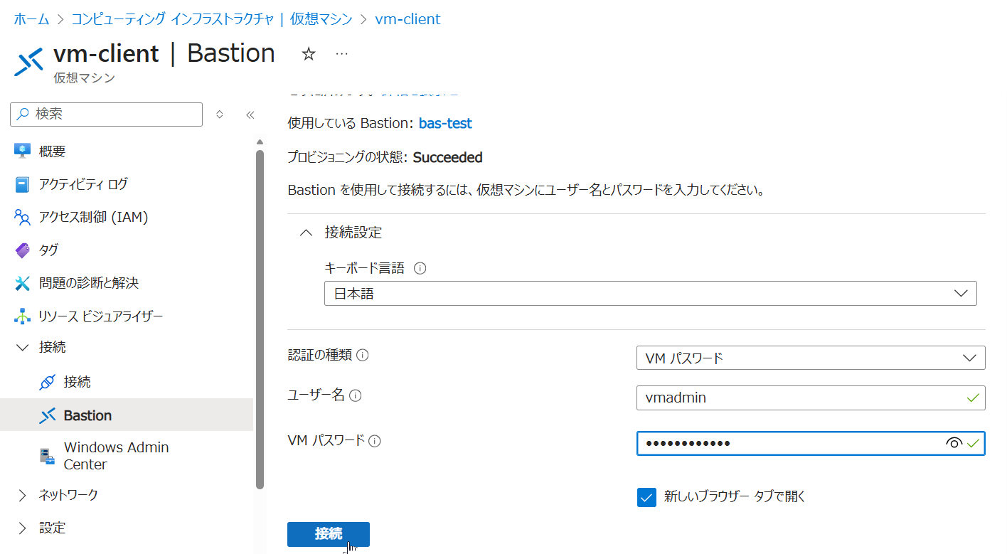 1. Azure Portal から Bastion 経由で VM にログインします。
