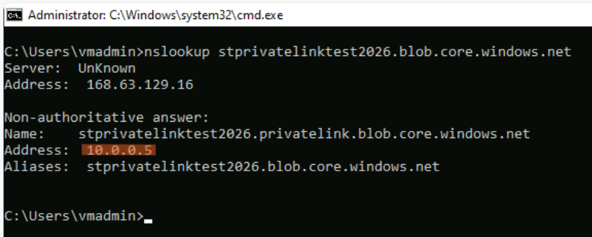 nslookup <作成したストレージアカウント名>.blob.core.windows.net