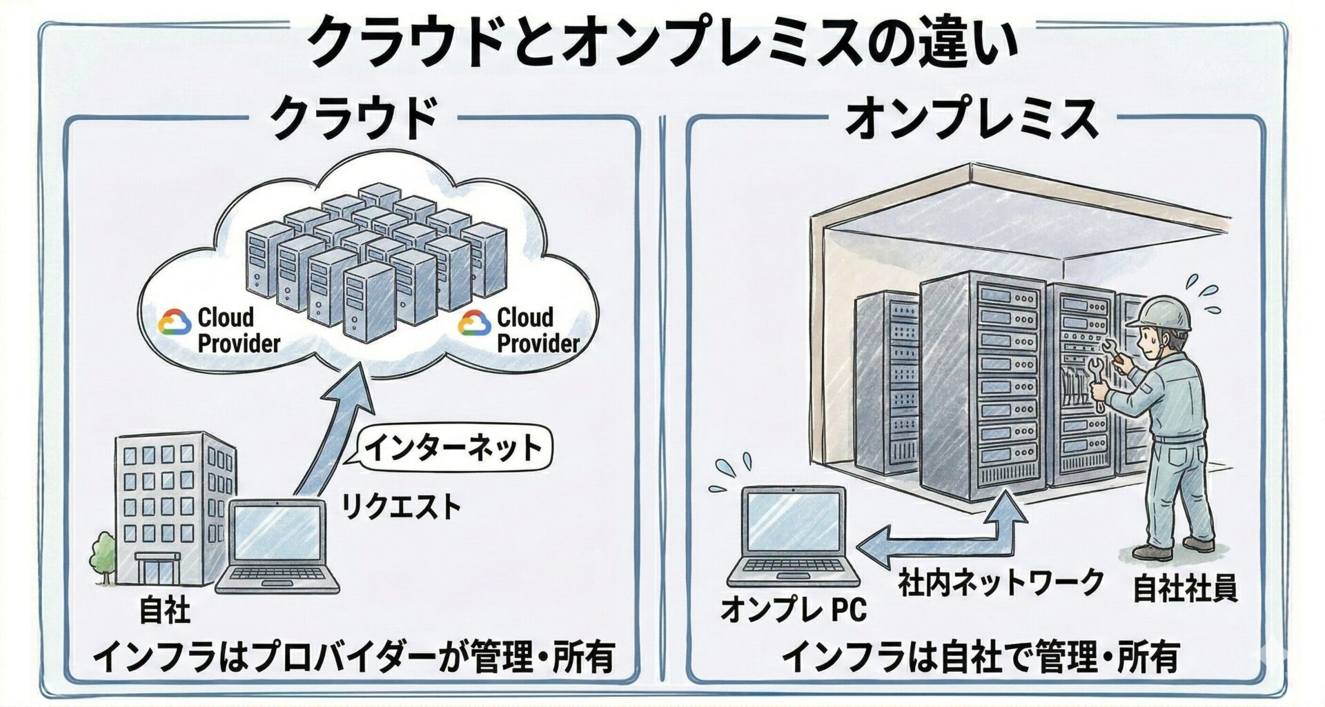 - クラウドとオンプレミスの基本概念と仕組みの違い
