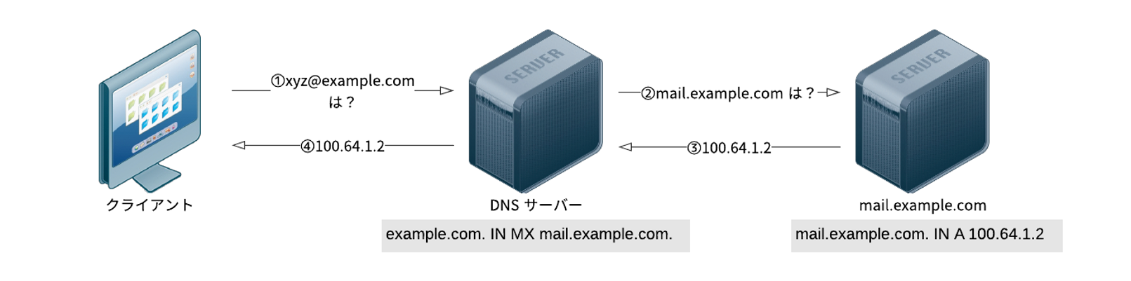 そのドメイン宛(@example.com)のメールを、どのメールサーバーに配送するかを指定します。 MX レコードには 「優先順位(Priority)」 という設定値があり、複数のメールサーバーを登録して冗長化することができます。数値が 小さいほど優先度が高い と判断されます。