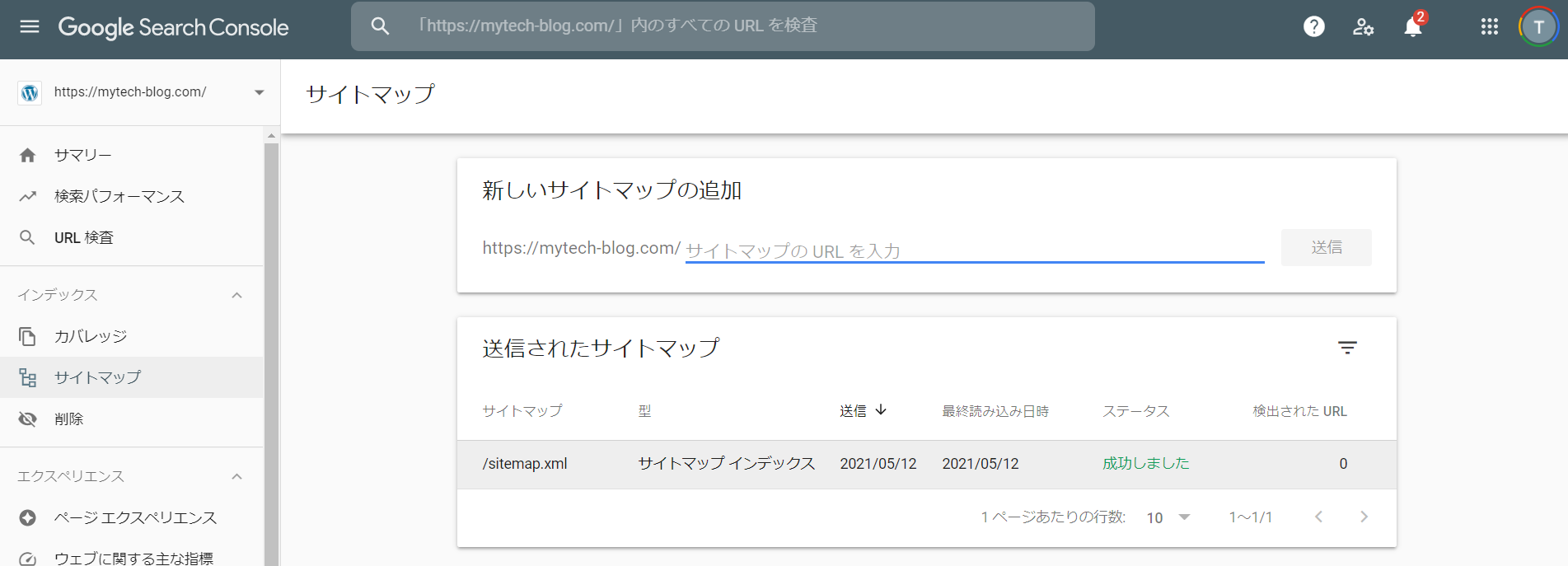 送信後、「サイトマップを送信しました」というメッセージが表示されます。 下の「送信されたサイトマップ」リストを確認し、ステータスが 「成功」 になっていれば登録完了です!