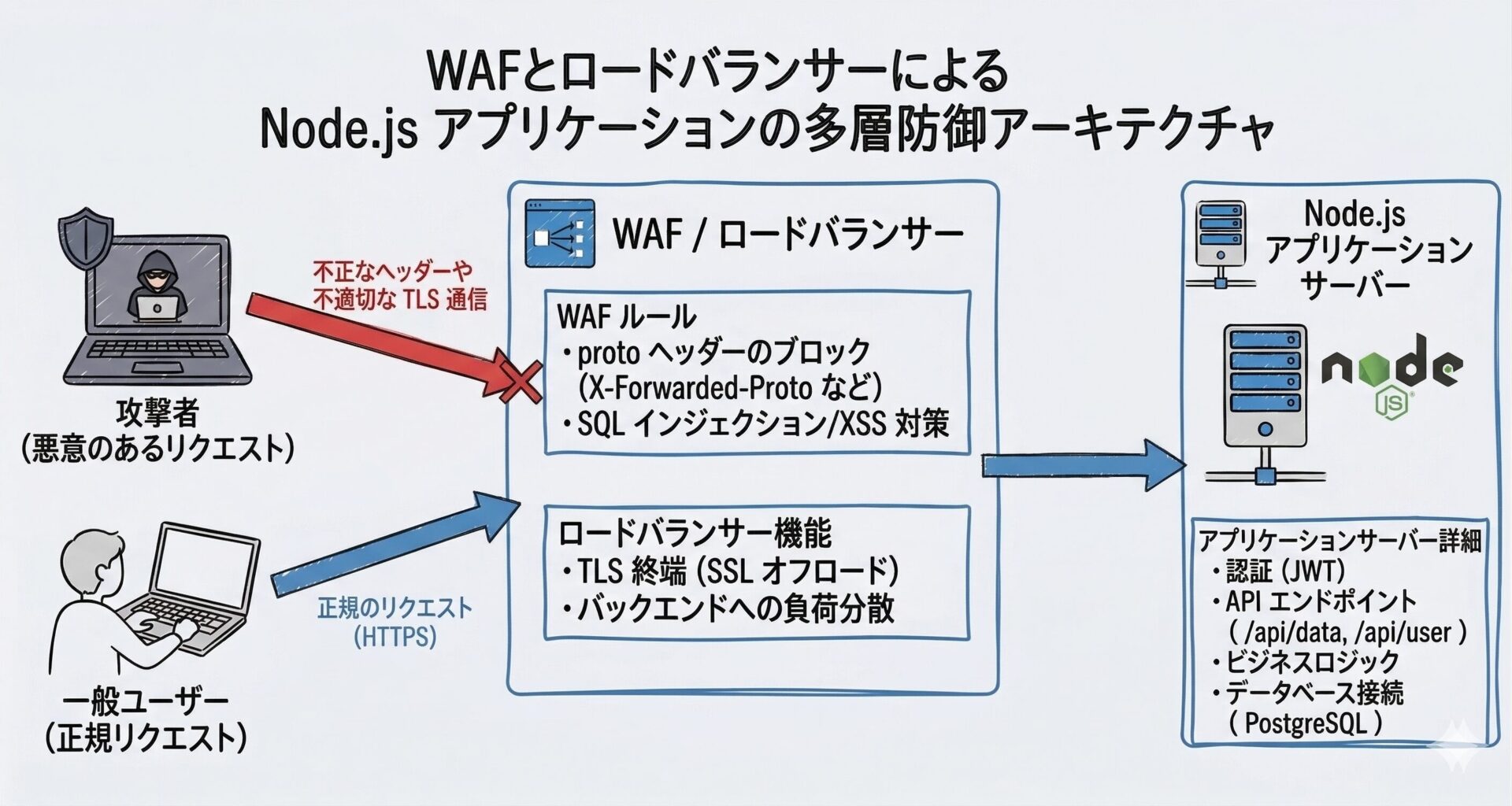 - WAF と Node.js の修正を組み合わせた多層防御アプローチ