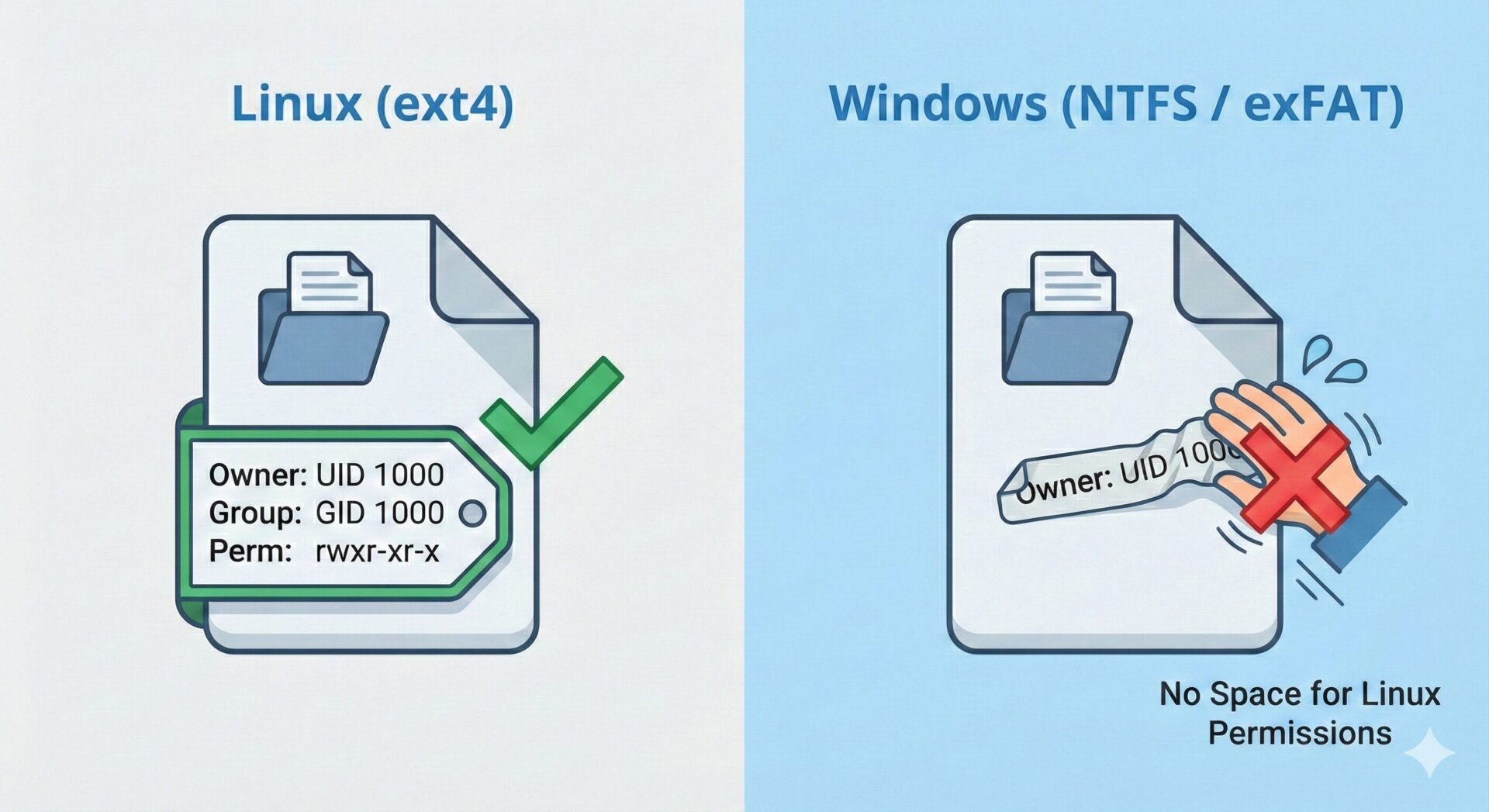 Linux(ext4など)と Windows 系(NTFS/exFAT)の決定的な違い