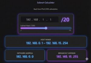 複雑なサブネットの計算はミスしやすいので、以下の計算ツールを使うのがおすすめです。IPアドレスとプレフィックスを入力するだけで、ワイルドカードマスクも一発で算出できます。