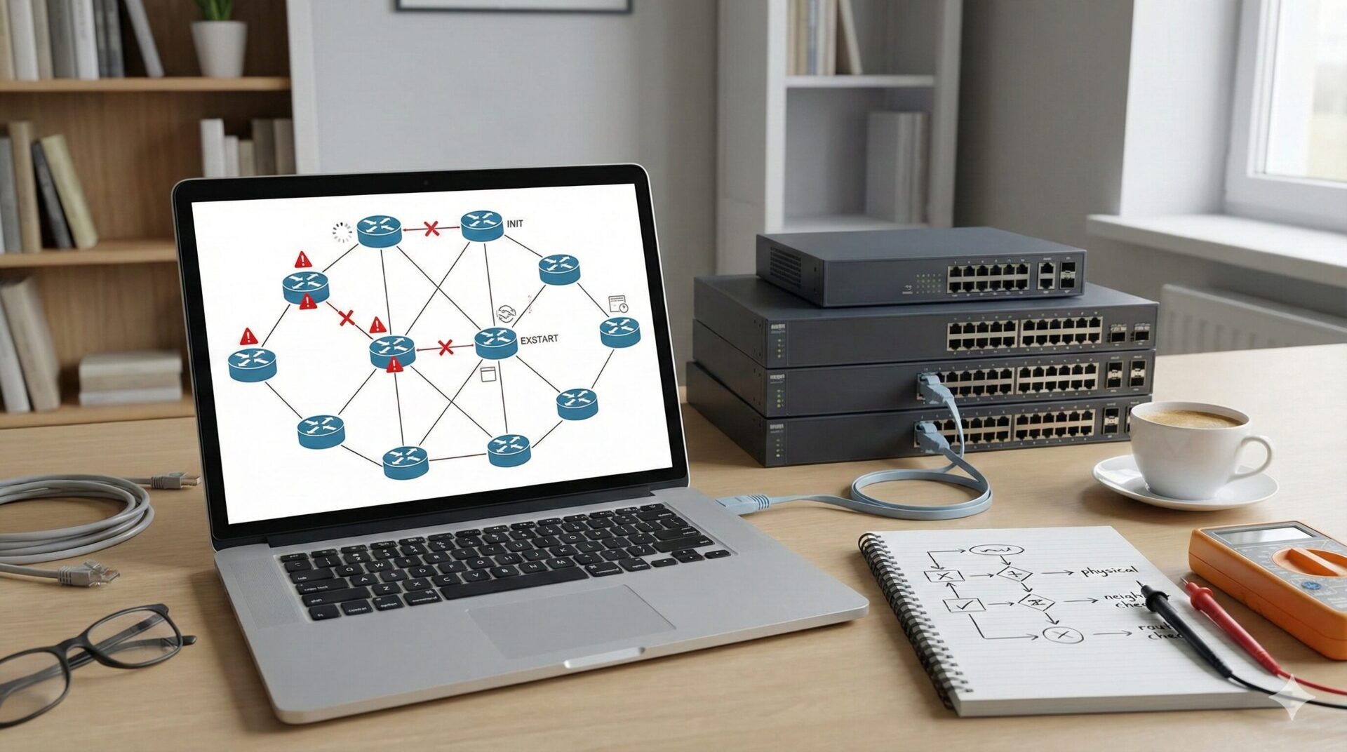 本記事では、基本的な疎通確認が取れていることを前提に、OSPF 特有のパラメータ不一致やステートの停止原因を論理的に切り分ける手順を解説します。
