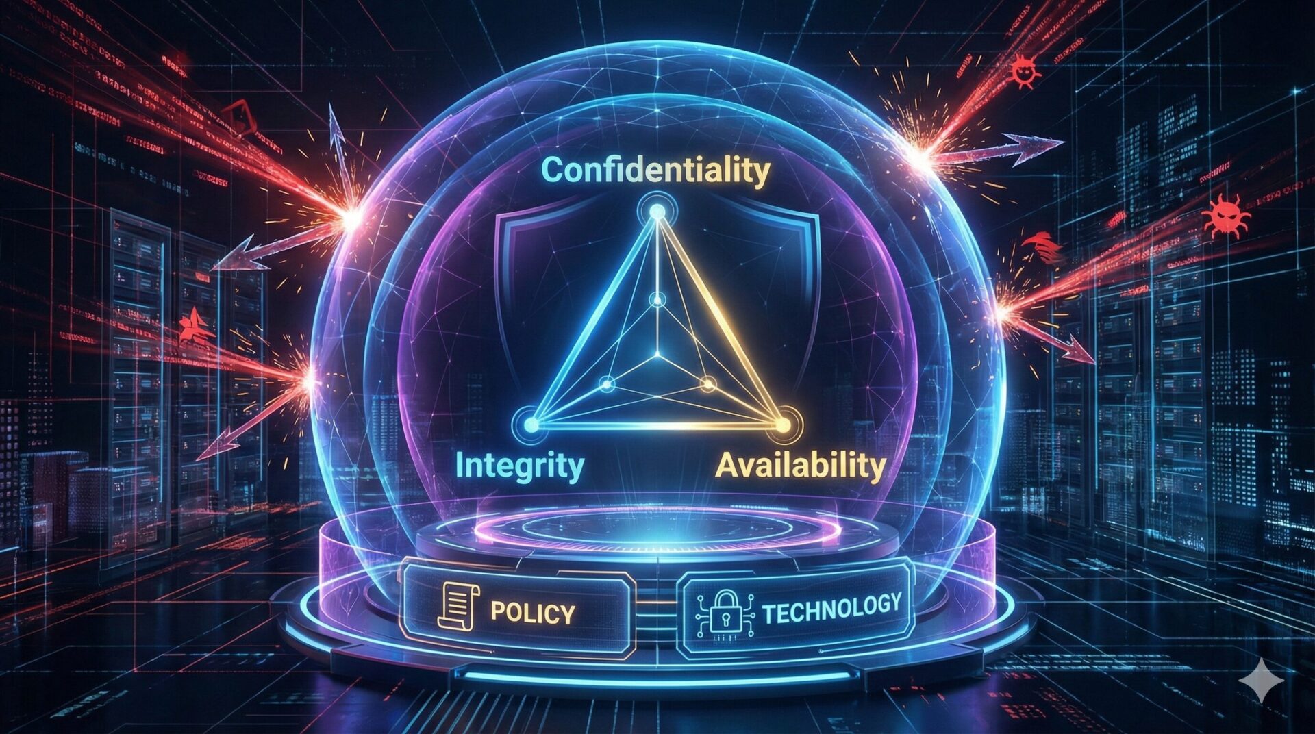 セキュリティ対策のゴールは、情報の 「機密性・完全性・可用性」 という3つの要素を維持することです。 これらは頭文字を取って 「CIA トライアド」 と呼ばれ、どれか一つでも欠けると情報資産は危険に晒されます。